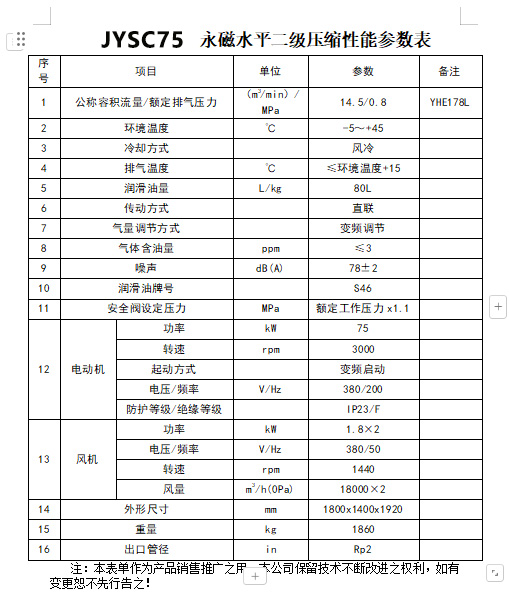 標題:75kW 水平雙級直連永磁變頻空壓機